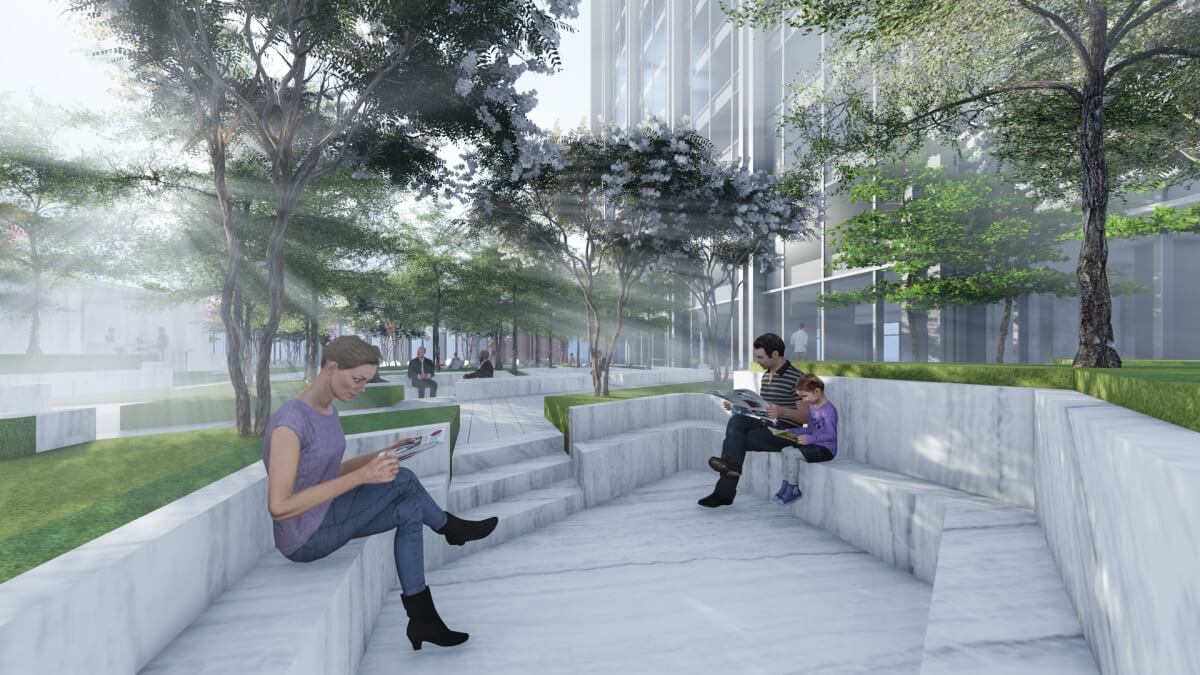 在不到1公顷的精巧的基地上,设计团队结合本案建筑立面的设计元素以及酒店品牌的雅奢经营理念,提炼了“光与华”的景观设计概念,将功能与美学完美而有效地融入场地的景观界面中,实现了“用场地作为光的容器承载了城市新的华丽亮点”的设计初衷。